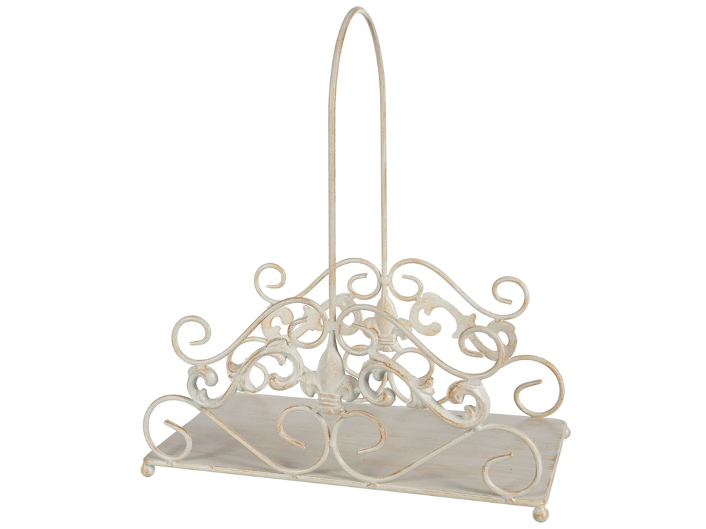 Porta riviste in ferro battuto di colore bianco decapato, misura articolo: 35x19x40cm