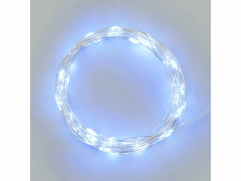 Catena lineare 4m 40 microled bianco ø1,5mm, versione pdq, luce fissa, a batteria 2xcr2032 3v (incluse), micro porta batterie con selettore on-off, ip20 uso interno e portatile, cavo metallo argento metal silver, dimensioni 4m, scatola pvc color ed espositore pdq try me (xkc art. m40s cr2032 pdq).