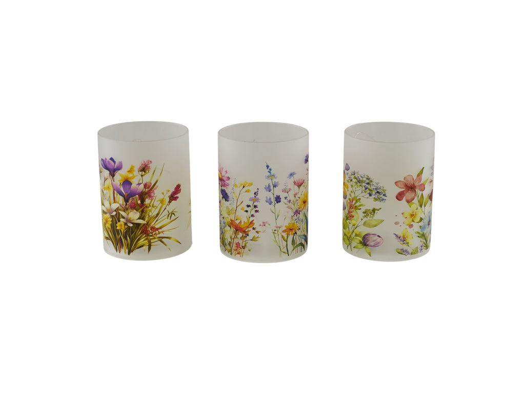 Lume in vetro decorato con fiori 9x12cm, 3 assortimenti