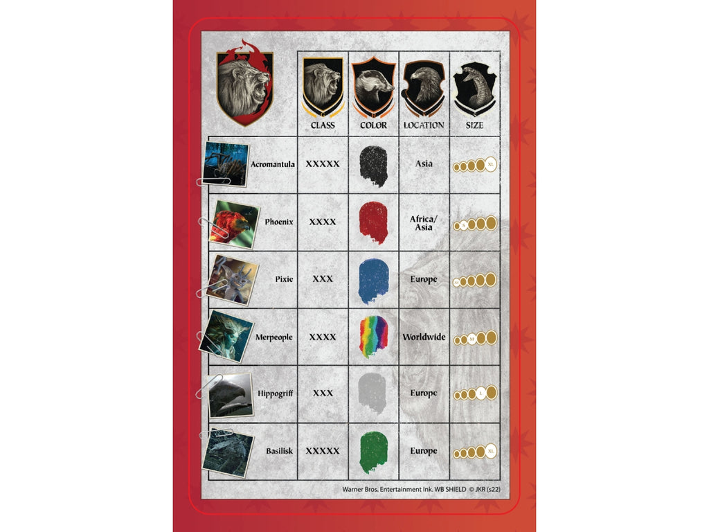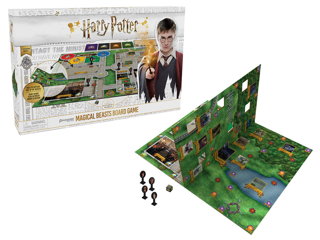 - La confezione comprende Tabellone sfogliabile con doppia superficie di gioco, 4 pedine, 72 carte indizi animali, 4 Carte indizio Ministero della Magia, Dado, Manuale di istruzioni