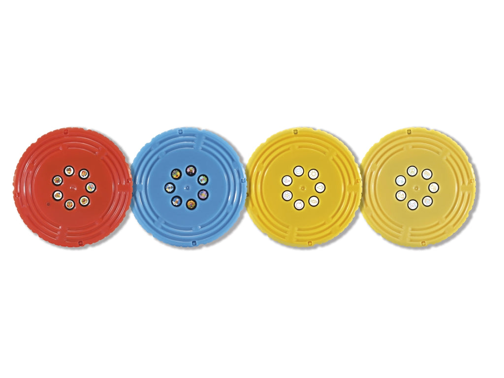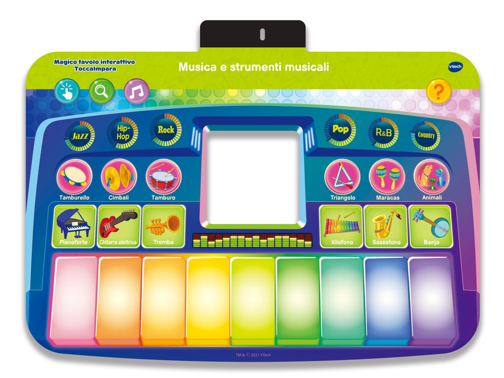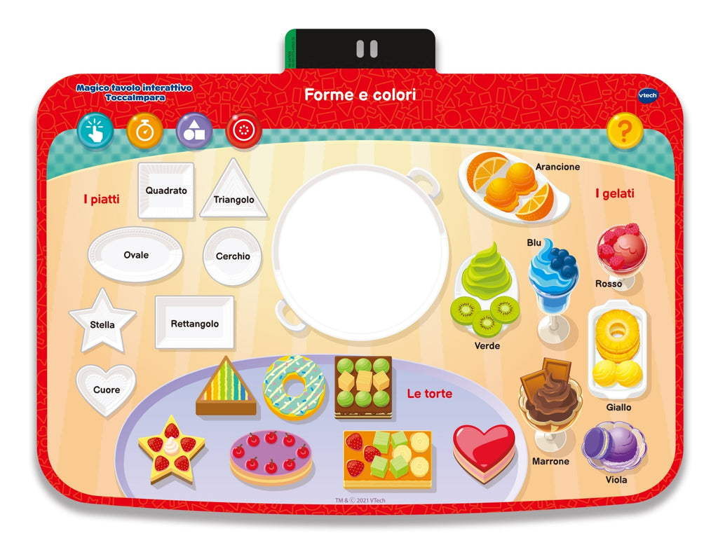 - La confezione comprende 1 tavolino interattivo, 1 agabello, 4 dischi per il proiettore, 2 schede