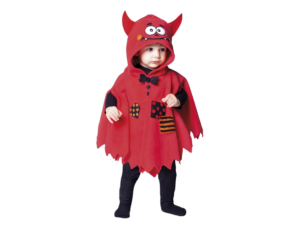 Piccolo Diavoletto pronto per dolcetto o scherzetto! Simpatico travestimento da diavoletto per bimbi dai 18 ai 36 mesi di età , in morbido tessuto, con stampe e ricami. Pratico da indossare sopra ai normali vestiti.