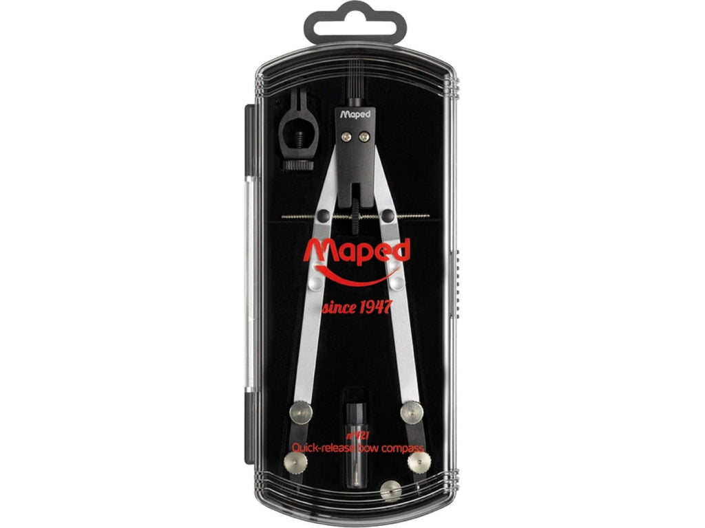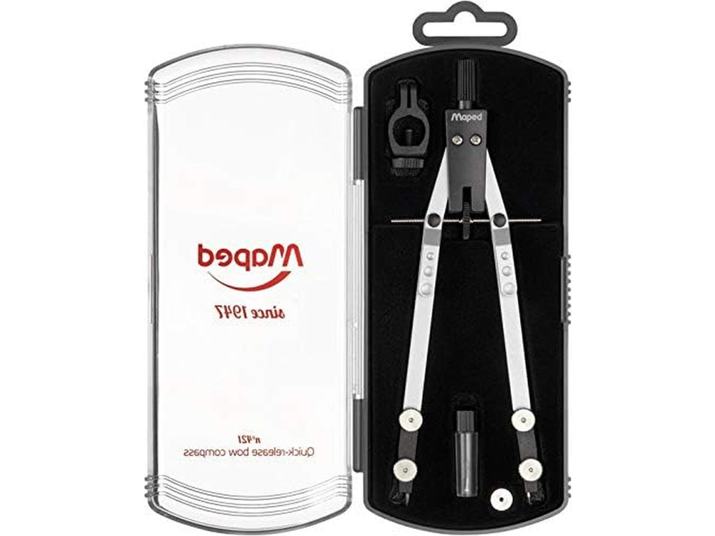 COMPASSO BALAUSTRONE AD APERTURA RAPIDA CON PROLUNGA IDEALE PER IL DISEGNO DI PRECISIONE! Tratti di precisione: la bussola dal 1947 n°421 è ideale per i disegni tecnici e di precisione. 4 viti di serraggio e l'inclinazione dell'estremità dei rami a 90° verso l'interno consentono una regolazione rapida, facile e ottimale. La testa dentata offre una buona presa. Strumento durevole: questo compasso 100% metallo offre prestazioni e robustezza ideale per studenti e professionisti che cercano una compasso di qualità resistente. Il corpo in plastica con cerniera a scatto è dotato di un supporto in velluto sagomato per gli accessori per un facile trasporto. Design sobrio Solidità : questo bilanciere è progettato in un metallo di qualità . La mina in grafite ricaricabile e intercambiabile con una penna o matita traccia dei cerchi perfetti. La sua punta in metallo ha un ancoraggio ottimale su tutti i supporti. Diametro massimo di scarto 30 cm. Scatola di accessori: consente di portare il compasso e i suoi accessori ovunque con voi. Include una bussola tecnica in metallo da 160 mm, una custodia di ricambio (2 mm), un adattatore per penna e un dado di ricambio.
