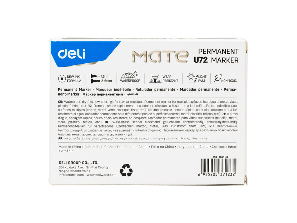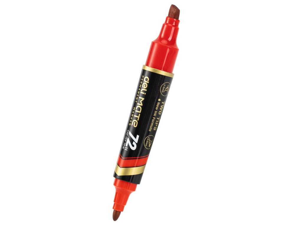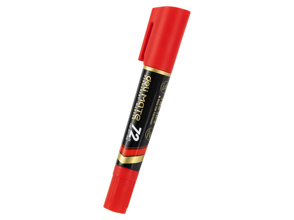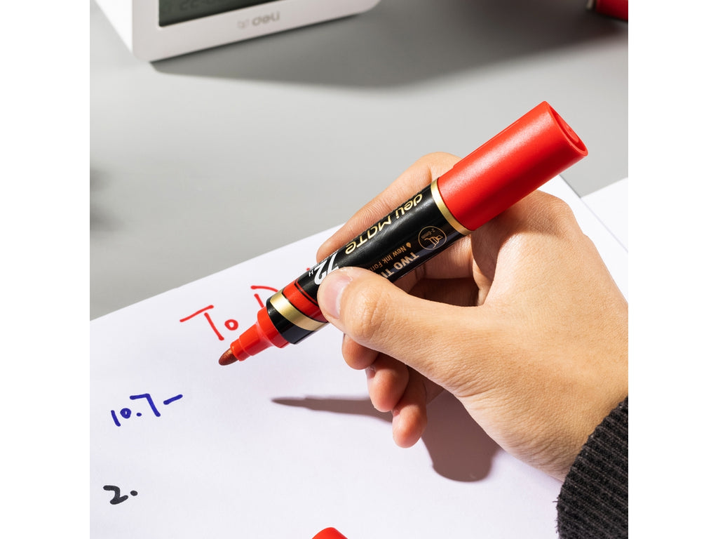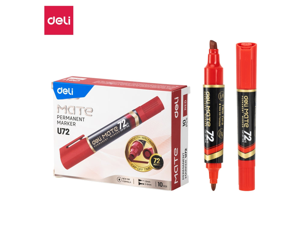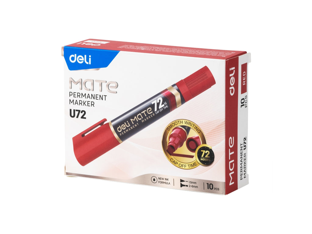 Marker permanente della linea MATE con doppia punta: tonda da 1,5 mm per dettagli precisi e scalpello da 2-6 mm per marcature più larghe. L’inchiostro rosso ad asciugatura rapida è altamente resistente all’acqua, perfetto per un uso intenso su diverse superfici. La speciale formula garantisce una durata eccezionale anche senza cappuccio fino a 72 ore. Confezionato in scatola da 10 pezzi, è la scelta ideale per ambienti scolastici, professionali o creativi.