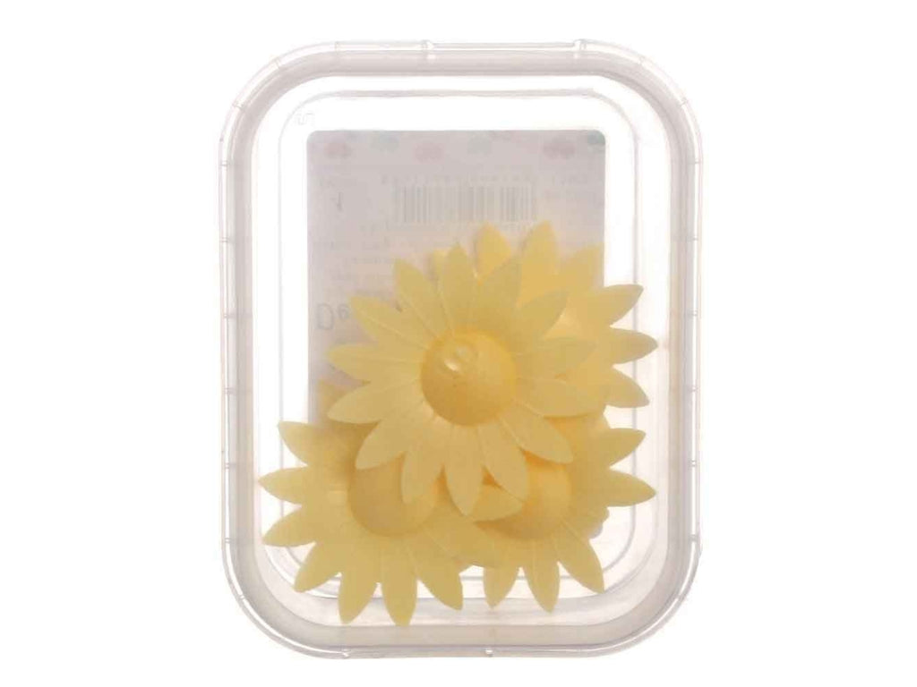 Margherite grandi in cialda colorate gialle Graziano. Grandi fiori di margherita realizzati in ostia colore giallo crema da 4 pezzi per decorare dolci e torte. Allegre margherite di cialda grandi di diametro 4 cm circa, con cui decorare la superficie delle scenografiche torte a più piani. Ogni scatola contiene 4 fiori di margherita realizzati in cialda alimentare nel colore giallo tinta unita. Perfette per compleanni, battesimi e matrimoni. Per gli ingredienti, la scadenza, il lotto di produzione del prodotto e tutte le informazioni nutrizionali fa fede l'etichetta riportata sulla confezione.
