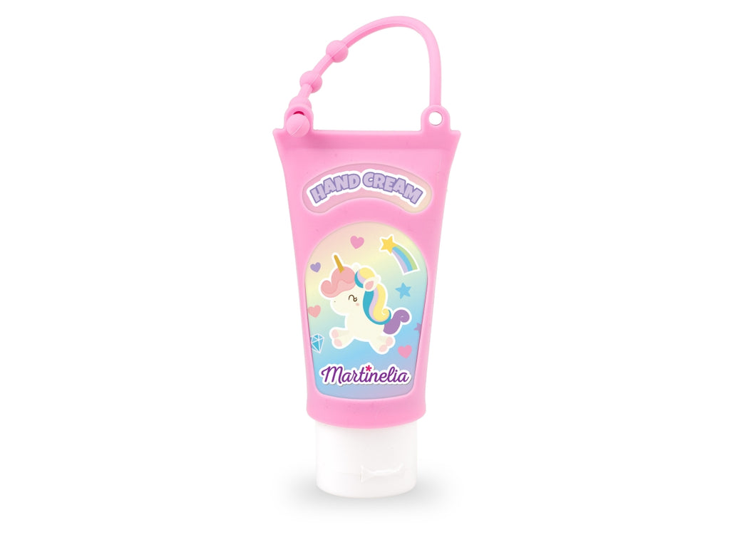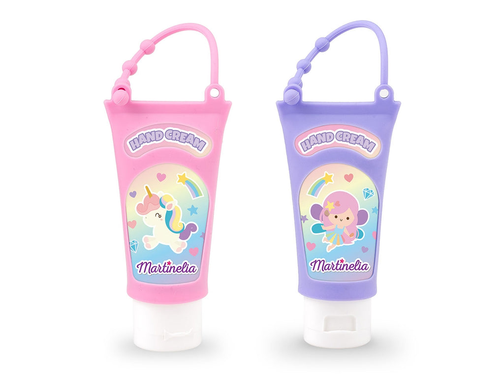 Crema mani idratante in formato mini con custodia in silicone con manico. Profumazione fragola e mirtillo. Ideale da portare appesa in borsa.