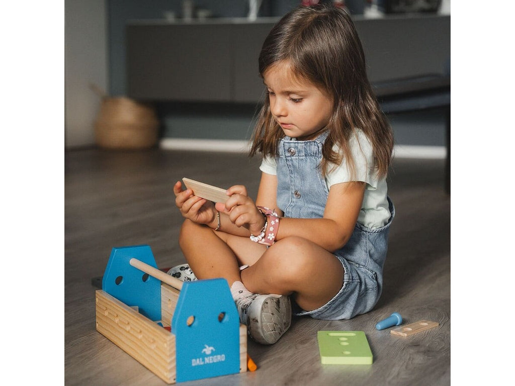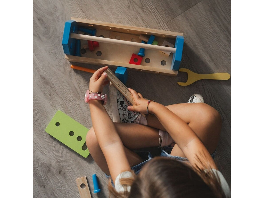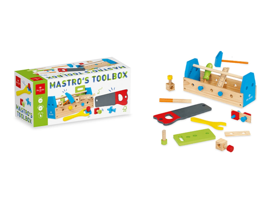 Mastro's Toolbox è composto da una morsa, una chiave inglese, un cacciavite e altri essenziali attrezzi da lavoro. Questa cassetta degli attrezzi incoraggia la risoluzione di problemi e le capacità di sviluppo, rendendola ideale per il gioco di ruolo e la creazione di storie fantasiose. Aiuta a sviluppare lâabilità di coordinazione occhio-mano dei bambini, insegna le tecniche di costruzione di base e la logica di funzionamento degli strumenti. Prodotto duraturo e resistente, realizzato con legno di alta qualità . Numero giocatori 1+, tempo di gioco 15 minuti.