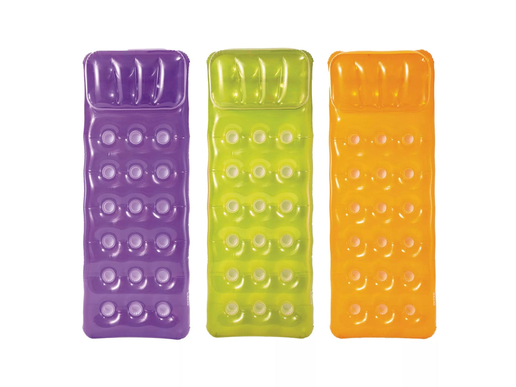 Questo elegante lettino gonfiabile a piazza singola, con dimensioni di 188x71,1 cm, è la scelta perfetta per chi desidera rilassarsi in piscina o al mare con un tocco di stile. La superficie trasparente lascia intravedere il fondo dai colori vivaci, mentre le 18 tasche porta bevande aggiungono praticità e originalità al design. Dotato di un comodo cuscino I-beam, garantisce un supporto ottimale per la testa e il massimo comfort. Realizzato con materiali resistenti, è perfetto per un utilizzo prolungato e viene fornito con toppe per la riparazione incluse per affrontare qualsiasi imprevisto. Perfetto per chi ama il relax e il design colorato, questo materassino è l’accessorio ideale per godersi il sole in totale comodità