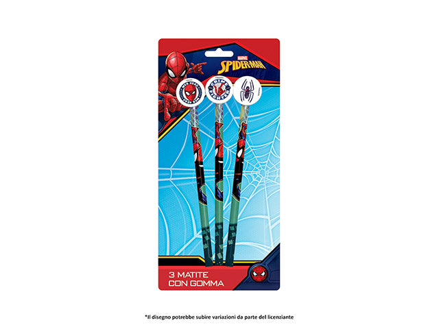 Matita a tema Spiderman con gomma 3 pezzi colore assortiti Brand MC.