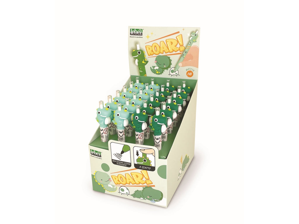 Matite HB a scatto con top fantasia in gomma forma di dinosauro. Capacita' di scrittura 500.000 parole, non devono essere temperate. Le matite infinity offrono un'esperienza di scrittura caratterizzata da un tratto sempre regolare e scorrevole grazie alla speciale punta studiata per comporre fino a 500.000 parole.