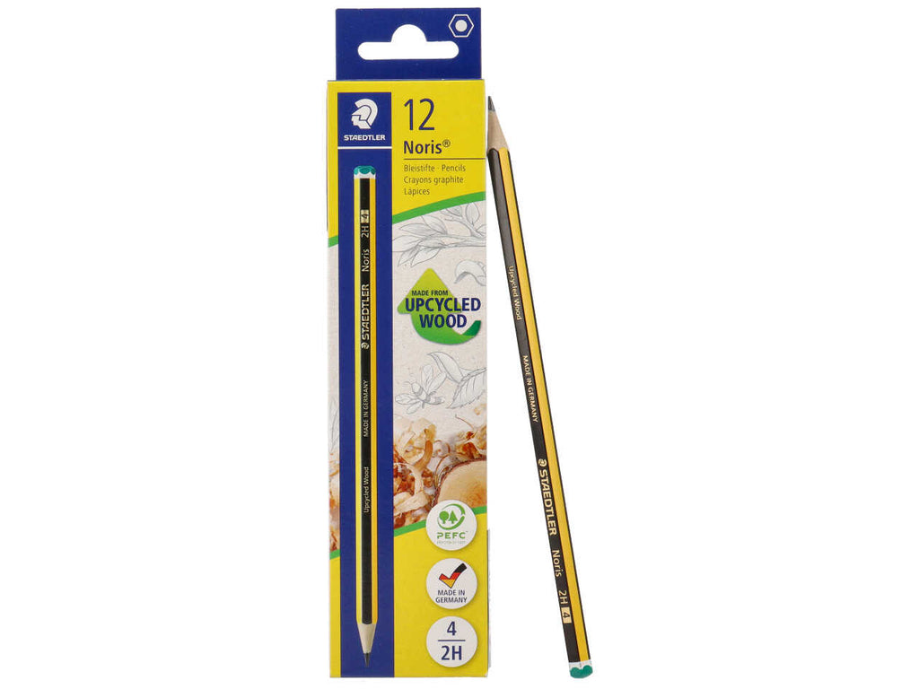 Matita noris 2h n°4 in grafite, forma esagonale, testa verde 12 pezzi colore giallo-nero brand staedtler.
