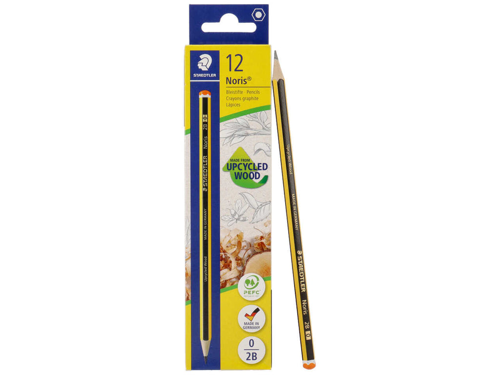 Matita noris 2b in grafite, forma esagonale, testa arancione 12 pezzi colore giallo-nero brand staedtler.