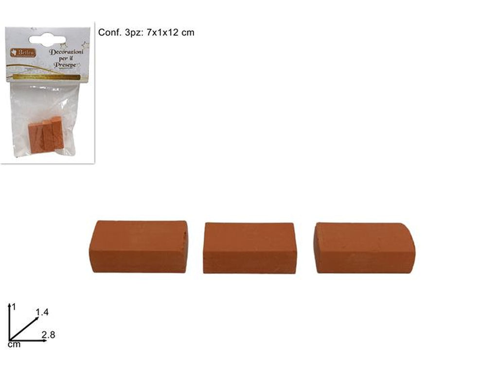 Mattoncini in terracotta 2,8x1,4xh.1cm confezione da 3 pezzi