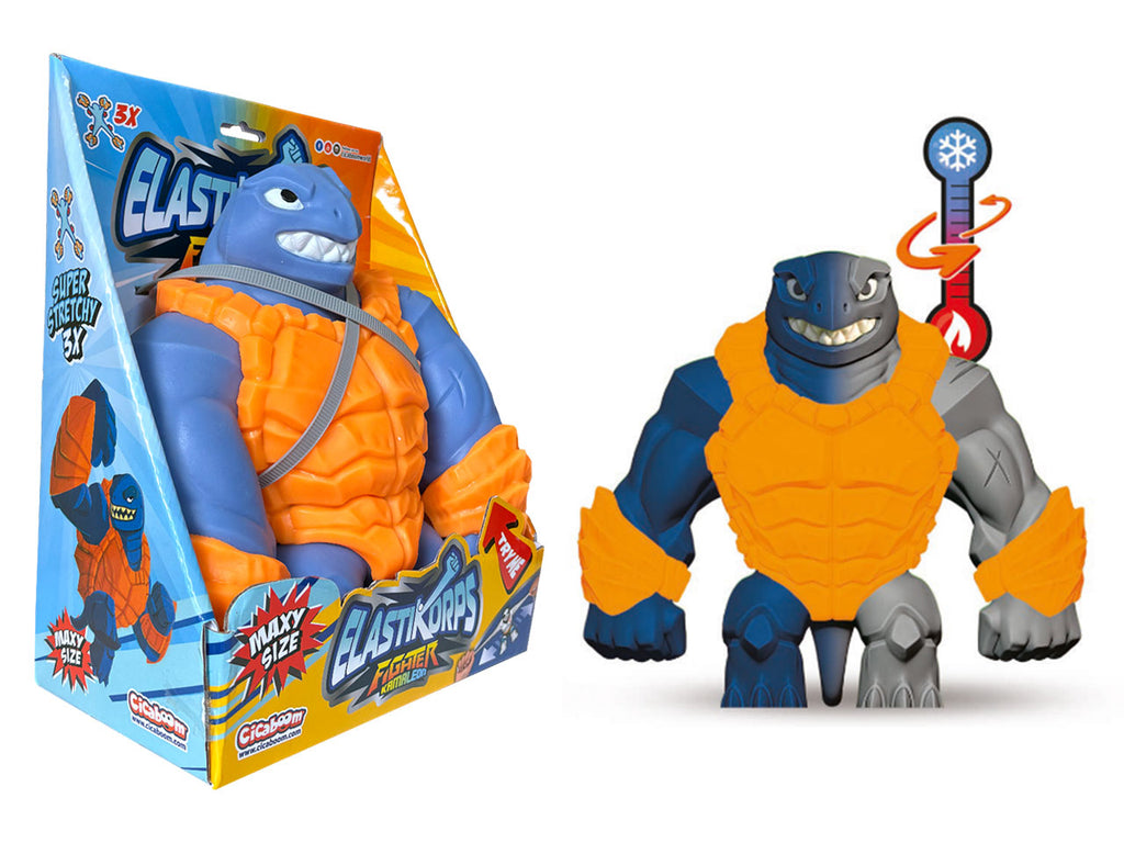 Maxi Turbo Elastikorps è il feroce guerriero squalo, pronto a scatenare la sua potenza in ogni avventura. Realizzato con materiale ultra elastico, Maxi Turbo può essere tirato e allungato fino a tre volte la sua dimensione originale, tornando sempre alla forma iniziale. Il suo design iconico con lâarmatura arancione e il sorriso affilato lo rende un personaggio unico e irresistibile. Dotato di effetto termocromico, cambia colore con il caldo e il freddo, aggiungendo un tocco interattivo al gioco. Con il suo formato extra large, Maxi Turbo garantisce unâesperienza di gioco coinvolgente e avvincente, ideale per stimolare lâimmaginazione dei bambini. La confezione interattiva consente di testare subito la sua straordinaria elasticità , trasformando ogni sfida in unâavventura epica. IMPORTANTE Il materiale elastico utilizzato è garantito per essere allungato fino ad un massimo di 3 volte la sua superficie iniziale. In caso di immersione nellâacqua consigliamo di applicare del talco una volta asciutto.