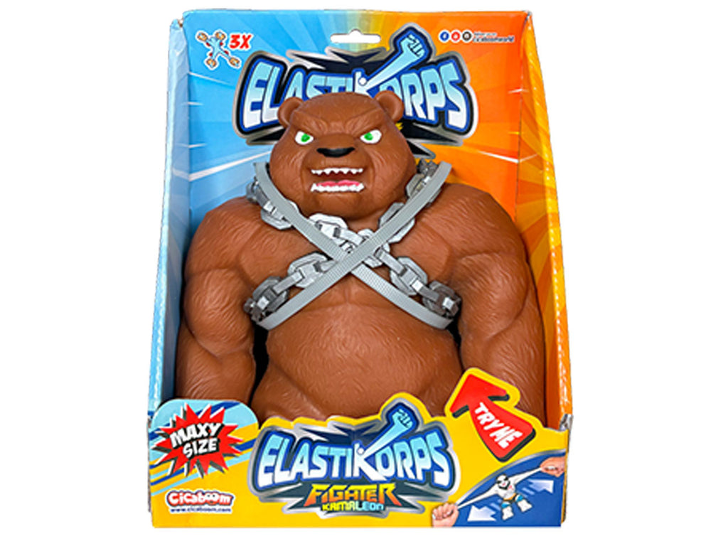 Maxi Ursus Elastikorps è il nuovo eroe del mondo Elastikorps, un panda combattente dall'aspetto possente e dal design accattivante. Realizzato con materiale super elastico, Maxi Ursus può essere allungato fino a tre volte la sua dimensione originale, mantenendo sempre la sua forma iniziale. Grazie allâeffetto termocromico, cambia colore al contatto con il caldo o il freddo, rendendo ogni gioco ancora più emozionante. Con il suo caratteristico kimono rosso e il suo aspetto feroce, Maxi Ursus è pronto a dominare qualsiasi sfida e a regalare ore di divertimento ai bambini. La sua dimensione extra large lo rende un protagonista unico per unâesperienza di gioco indimenticabile, stimolando la creatività e la fantasia di grandi e piccoli. La confezione interattiva permette di provare subito la sua straordinaria elasticità , trasformando ogni momento in unâavventura. IMPORTANTE Il materiale elastico utilizzato è garantito per essere allungato fino ad un massimo di 3 volte la sua superficie iniziale. In caso di immersione nellâacqua consigliamo di applicare del talco una volta asciutto.