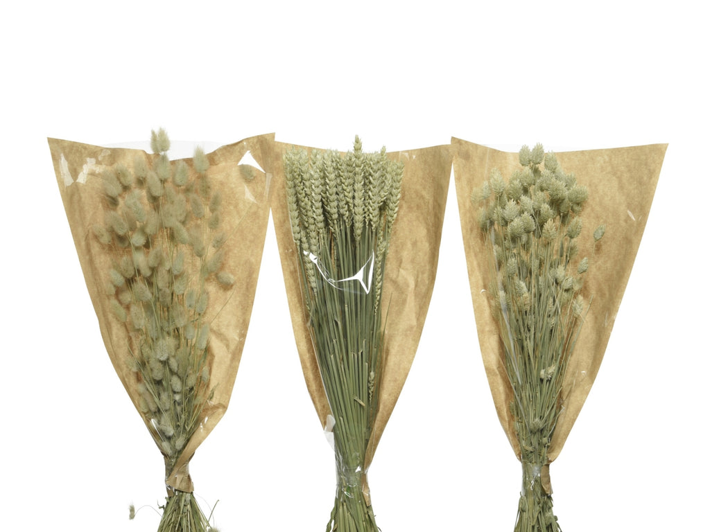 Crea un'atmosfera calda e naturale in casa con questo elegante grano di fiori secchi Everlands. Questo singolo stelo ha una lunghezza di 60 cm e un diametro di 14 cm, realizzato con falaride, grano e lagurus naturali accuratamente essiccati. Le autentiche tonalità di marrone e il materiale setoso gli conferiscono un aspetto rustico e senza tempo. Ideale come decorazione in un vaso o combinato in un bouquet secco per un'atmosfera che non richiede manutenzione. Il fiore artificiale perfetto per un interno elegante e duraturo.