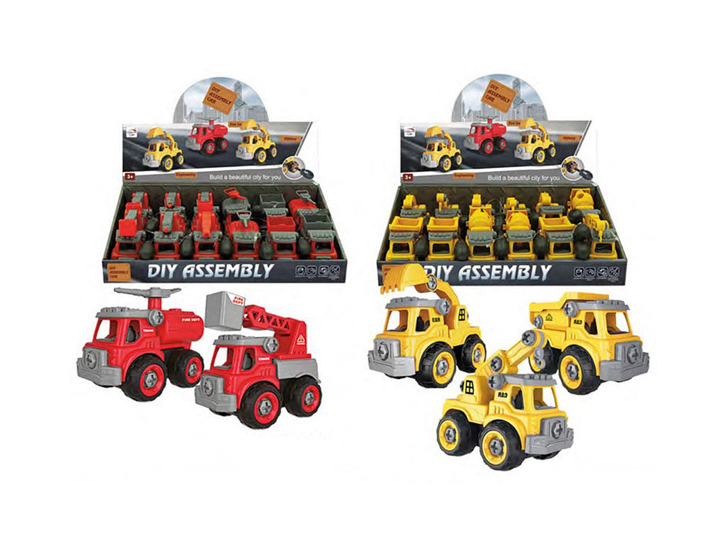 Mezzi da lavoro e soccorso 10cm smontabili con cacciavite incluso per l'assemblaggio in display box da 12 pz