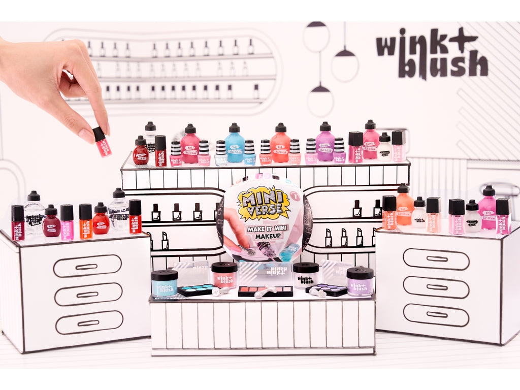 Ecco Make It Mini Makeup, una collezione di cosmetici giocattolo che funzionano davvero! on una varietà di tonalità e colori per tutti i gusti, puoi creare la tua mini collezione di trucco, dalle tinte per le labbra agli ombretti e molto altro ancora! Crea il tuo makeup Make It Mini seguendo le istruzioni incluse. Ogni confezione funge da mini-mobile da trucco, ideale per esporre con stile le tue creazioni Make It Mini Makeup. Include anche un ripiano integrato per riporre gli accessori extra. Il trucco creato è perfettamente funzionante e reale, ideale per i ritocchi veloci al volo. Crea e colleziona l'intera linea di trucchi Make It Mini Miniverse!.