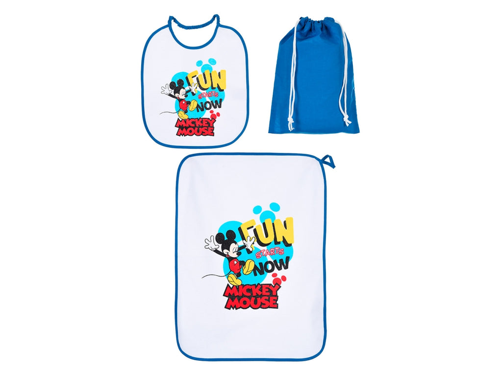 - La confezione comprende 1 bavaglino, 1 tovaglia e 1 sacca