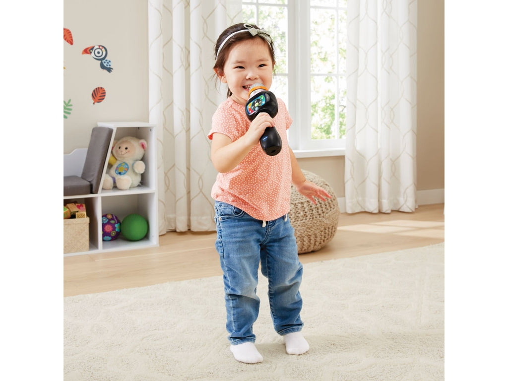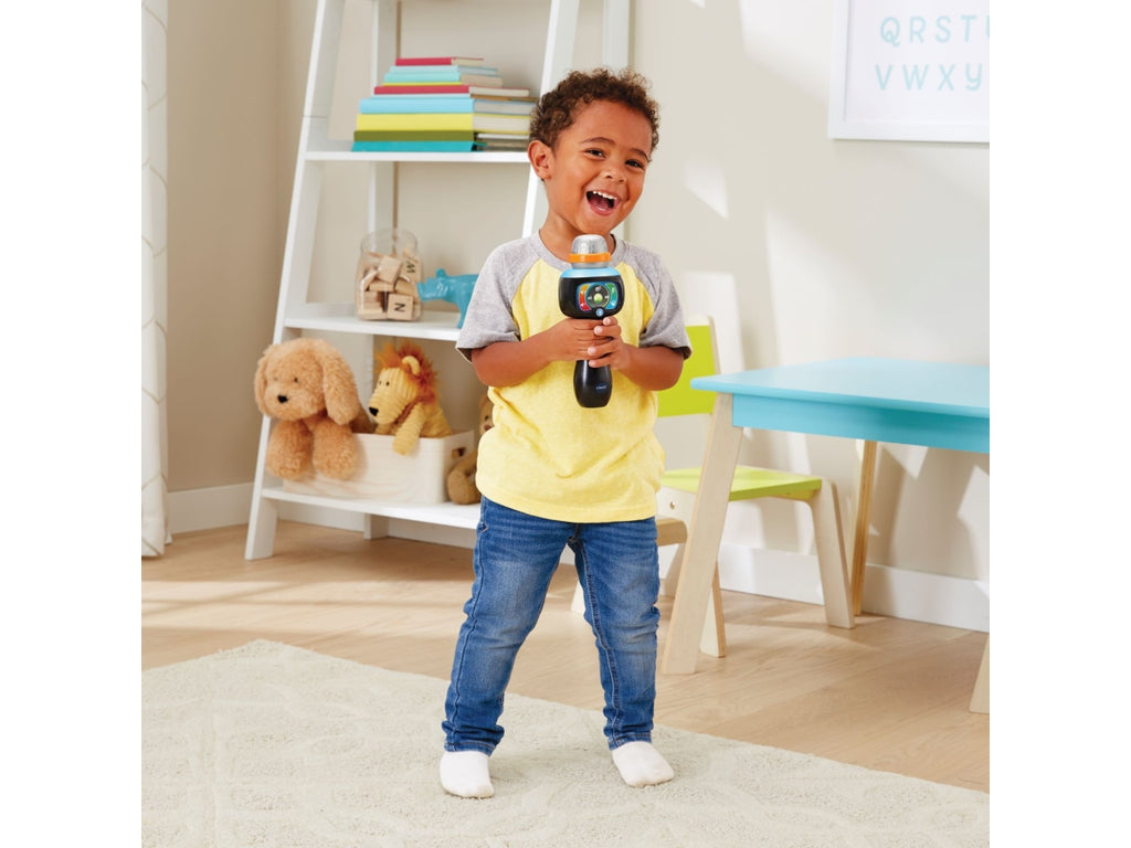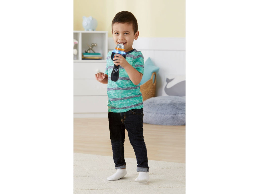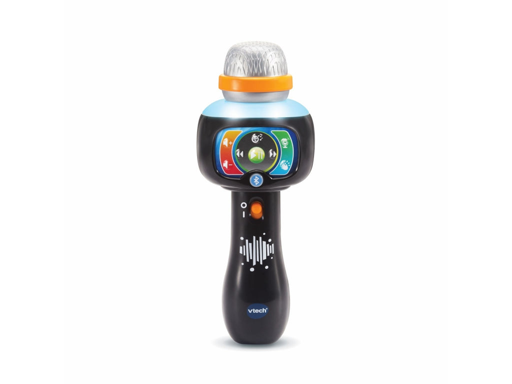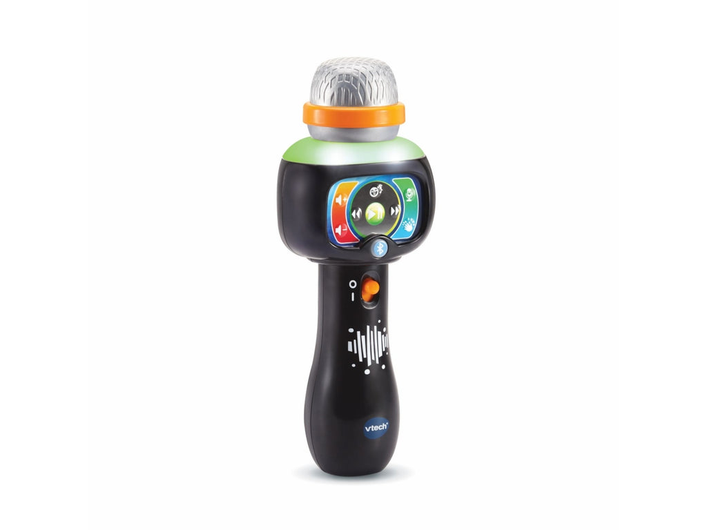 Microfono con 5 filtri vocali divertenti per giocare a cambiare la tua voce. Funzione Magic Voice per togliere la traccia vocale dalle canzoni e giocare a fare il karaoke. Connessione Bluetooth® con codice per poter ascoltare e cantare le tue canzoni preferite. Musica e divertimento: grazie ai diversi pulsanti puoi regolare il volume, cambiare, mettere in pausa o riprodurre una canzone, riprodurre dei suoni divertenti e anche degli applausi! Magico e luminoso! Il microfono si illumina e cambia colore al ritmo della musica e della tua voce! 15 canzoni incluse. Regolazione del volume e spegnimento automatico. Scatola Try Me