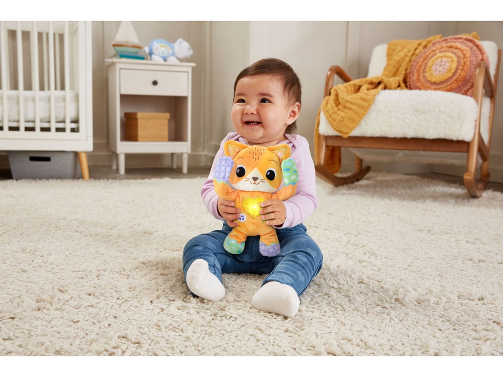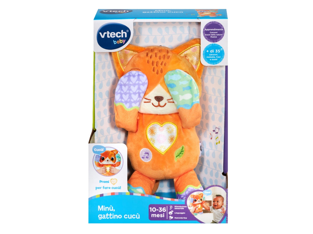 Il gattino cucù Minù è un giocattolo perfetto per intrattenere e stimolare il tuo bambino. Dotato di 4 canzoni e 15 melodie, questo adorabile gattino ha un cuoricino luminoso che può essere premuto per far muovere le sue zampette e fare cucù al tuo piccolo. Con i pulsanti Musica e Foglia, puoi riprodurre divertenti canzoni, melodie rilassanti e suoni della natura. Grazie ai materiali differenti utilizzati, Minù stimola tutti i sensi del tuo piccolo. Con oltre 35 canzoni, melodie, frasi e suoni, il divertimento non finisce mai. Inoltre, puoi regolare il volume e il giocattolo si spegne automaticamente per risparmiare energia.