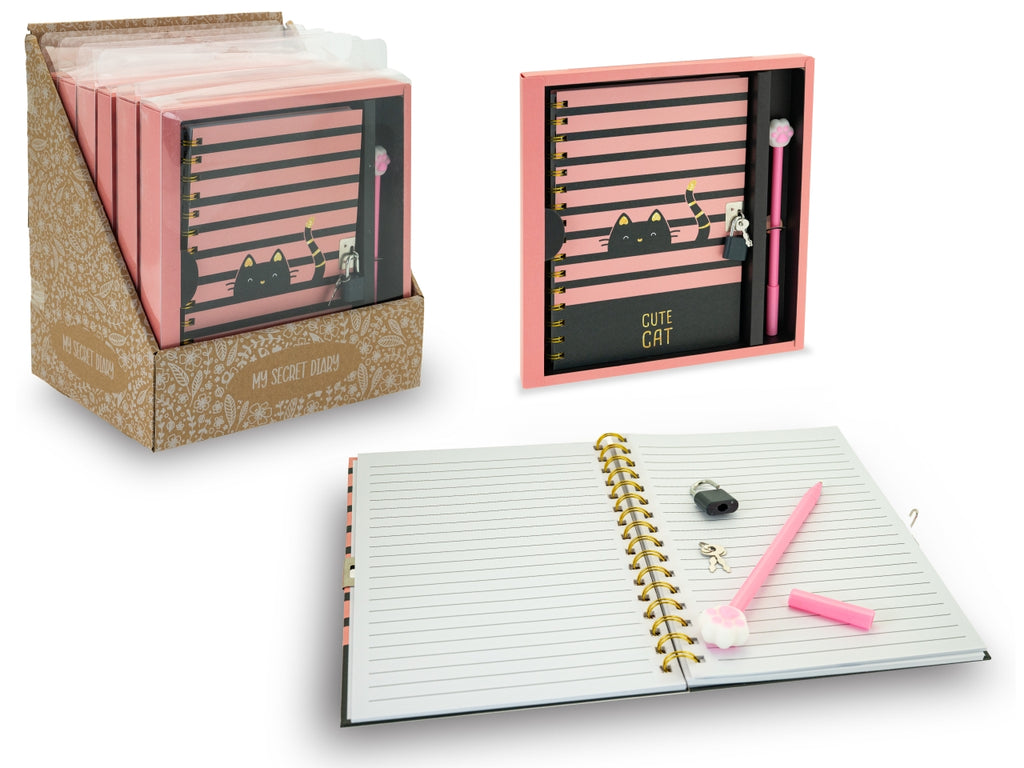 Miss signorina diari cats 4 modelli assortiti black&pink con lucchetto e penna