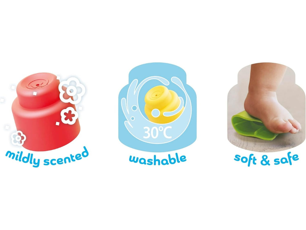 Blocchi da costruzione realizzati in materiale certificato, morbido al tatto e leggermente profumato per stimolare tutti i sensi. Superfici lavabili e resistenti, ideali per l'esplorazione tattile dei neonati. Costruzioni morbide per bambini che garantiscono sicurezza totale anche durante la fase orale di scoperta del mondo.