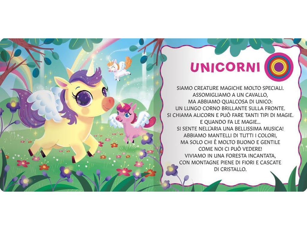 Un libro sui mondi magici tutto da scoprire e ascoltare. Con tante meravigliose creature fantastiche da conoscere, simpatici testi e suoni magici da ascoltare semplicemente girando la pagina, senza dover premere nessun pulsante. Divertente e pieno di stimoli per rafforzare la percezione sensoriale. Età di lettura: da 3 anni. Numero pagine: 28.