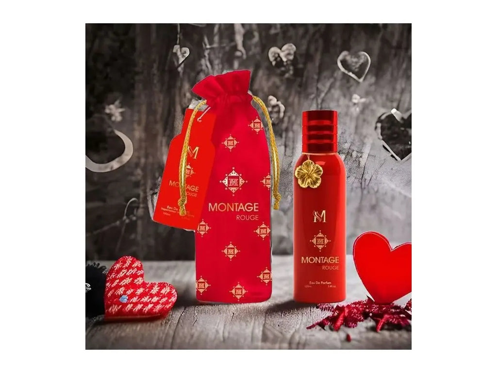 Profumo Montage Rouge da 100 ml. MONTAGE ROUGE è una fragranza unisex orientale, legnosa-speziata, calda, con chiari accordi di pompelmo. Rouge presenta una nota seducente e distinta di pepe combinata con altre spezie! Esprimi la tua personalità tramite le note avvolgenti di questa fragranza. Il contenitore dall'aspetto lussuoso è perfettamente trasportabile ovunque necessario grazie alle dimensioni compatte. Adatto a chi deve sempre mantenere un'aspetto pulito e ordinato. Ottima idea regalo per compleanni, anniversari, promozioni ecc. Applica il profumo nei punti strategici come polso, collo e caviglia per un efficacia maggiore e prolungata senza però risultare invadente.