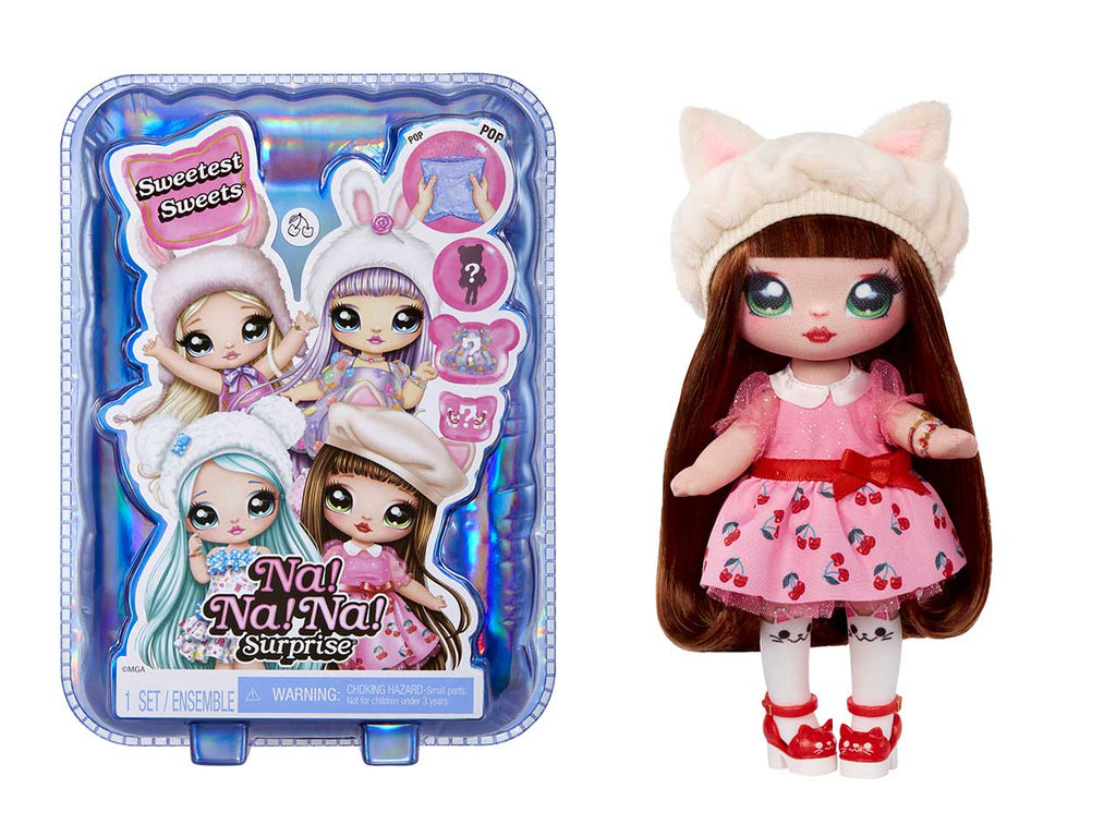 Festeggia quella persona speciale con stile con le nuovissime bambole alla moda na na na surprise sweetest sweets! preziose e davvero glamour, le sweetest sweets ispirate agli animali sono il regalo perfetto per celebrazioni grandi e piccole. ottieni una morbida bambola alla moda in abiti glamour più un pennello coordinato! ogni bambola ha uno splendido abito, scarpe e un berretto peloso ispirato agli animali. il berretto non è rimovibile. le bambole na na na surprise sono le prime bambole alla moda morbide e snodabili con viso stampato e dettagli alla moda! la confezione nascosta a sorpresa, rivela quale personaggio hai quando apri la confezione!