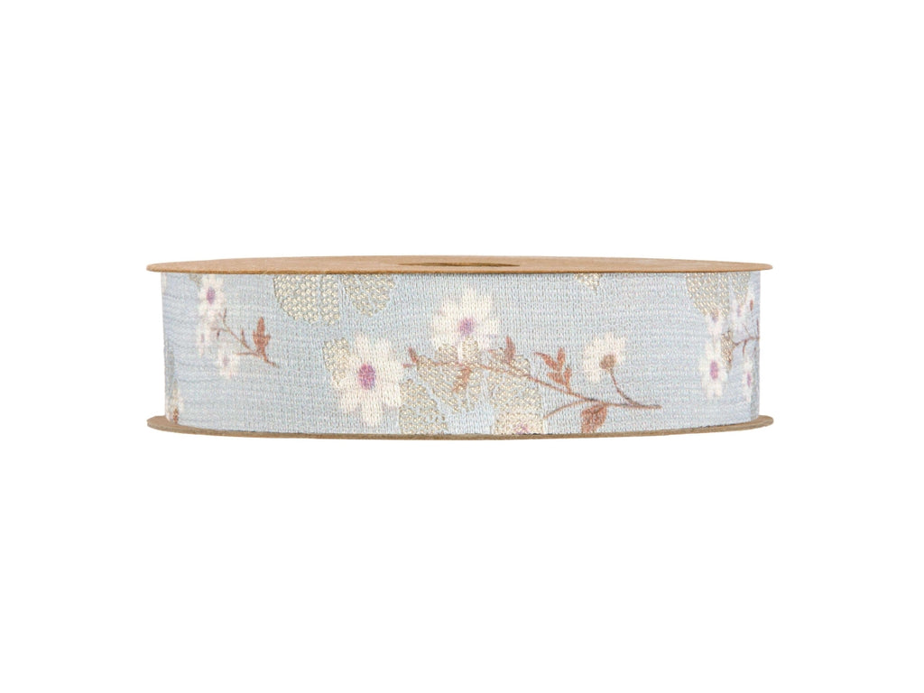 Nastro con margheritine raso con tela 2,5cmx10mt celeste