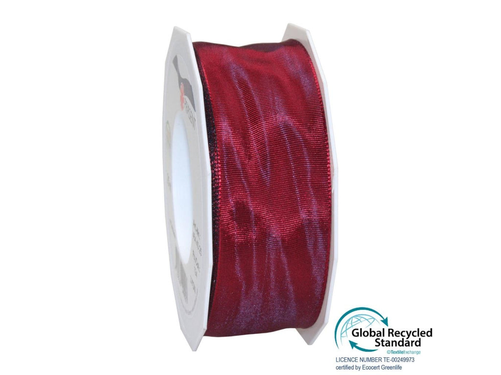 Nastro lyon di seta 4cmx25mt con bordo in filo rosso carminio