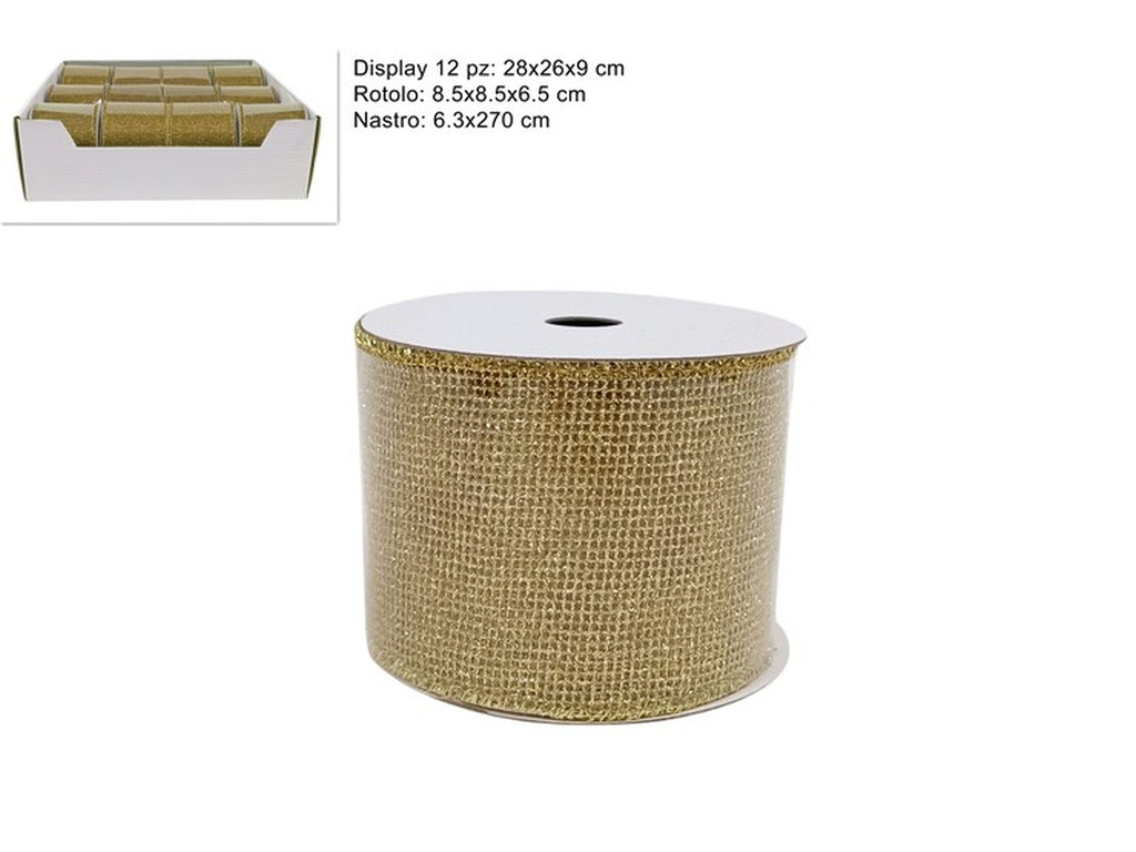 Nastro retinato glitterato 6,3cmx2,7mt oro