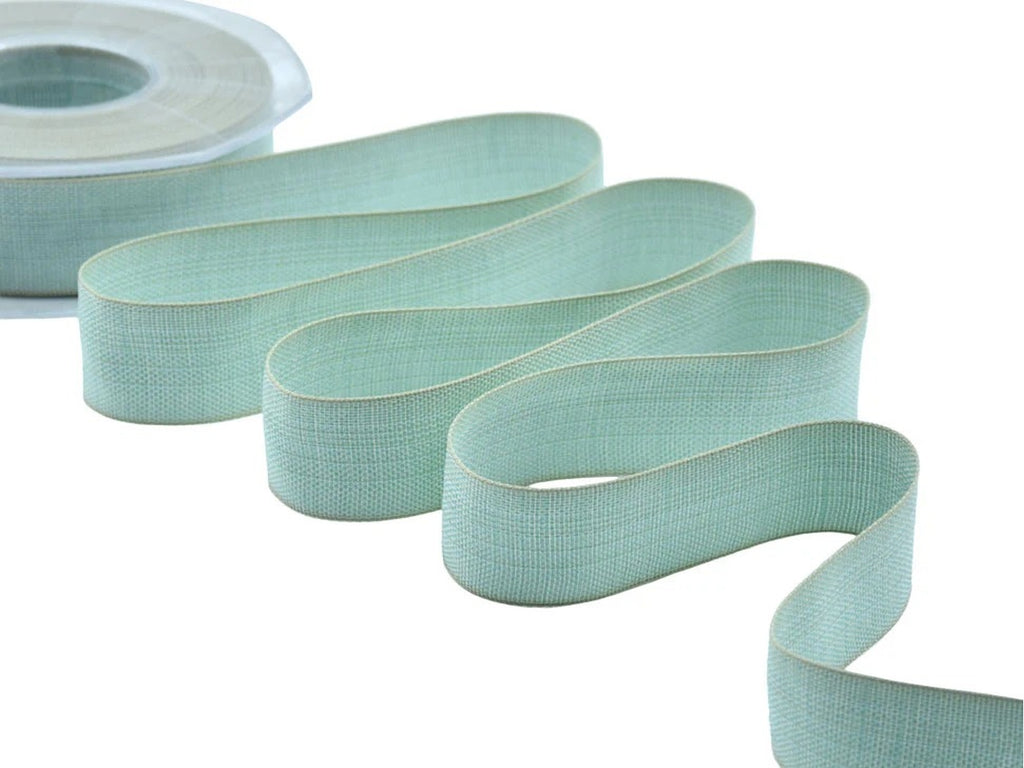 Tela Canovaccio 25 MM Verde Acqua Marina. E' un nastro dai colori morbidi. E' raffinato e serio. I suoi colori sono certamente classici, caldi ed intimi. Puoi utilizzarlo sia per i tuoi pacchi regalo seri che per imbellire una tavola dove