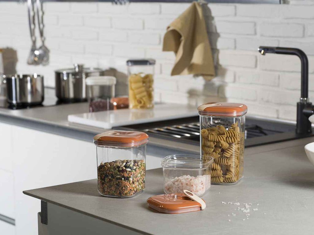 Questo set comprende tre diverse misure del contenitore Pull Box Omada. Il set garantisce l'ermeticita' grazie a un sistema di chiusura brevettato e a una guarnizione che si conforma al contenitore.Questo prodotto è pratico e funzionale. Capacità : 0,,5-1-1,5 litri.