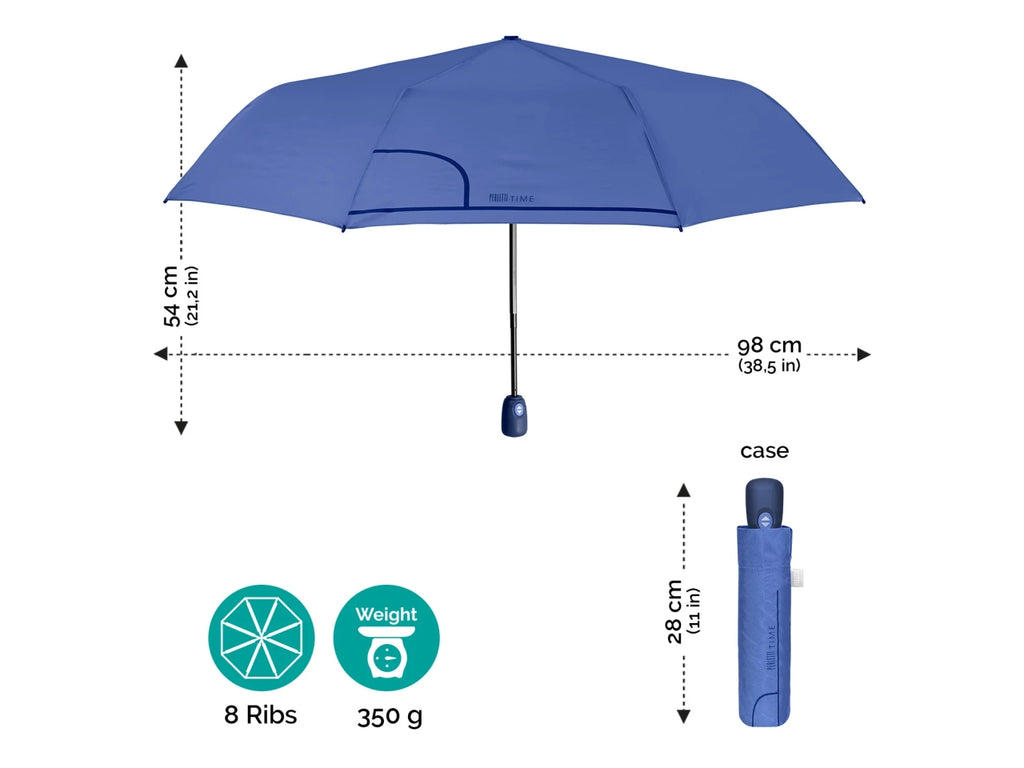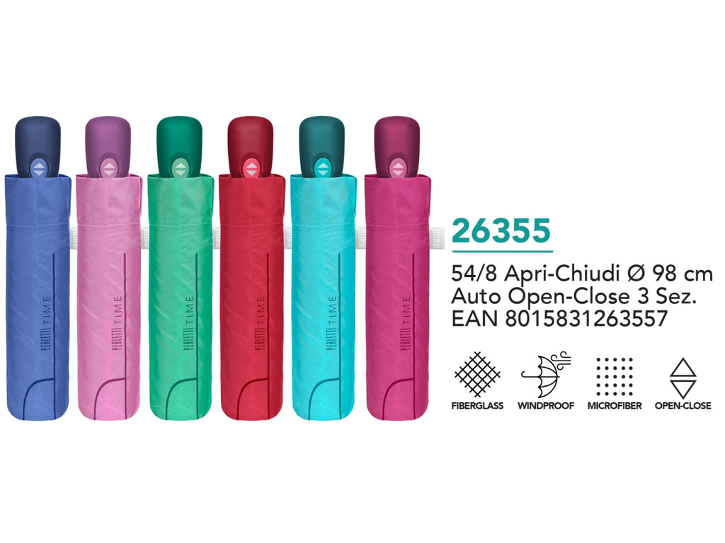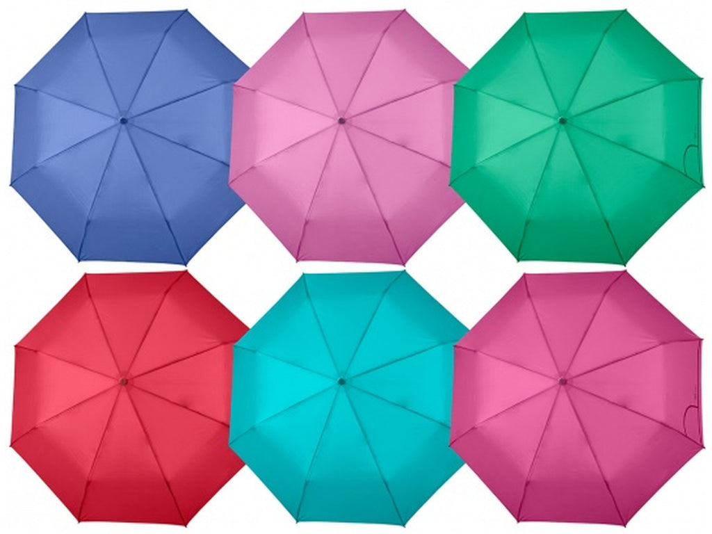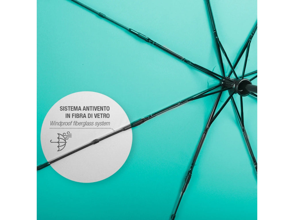Ombrello tinta unita con apertura automatica apri-chiudi per rendere il colore protagonista delle tue giornate: dall'acceso rosso al delicato rosa pastello o al raffinato indaco. Questi accessori da pioggia conferiscono allegria e colore anche alle giornate piovose più buie! Questo ombrello pieghevole da donna è un accessorio comodo da riporre in borsa o nello zaino per ripararti da pioggia e vento. La sua struttura antivento compatta e resistente, grazie a innovative bacchette in fibra di vetro, lo rende leggero e flessibile anche con le raffiche di vento più forti. Il suo tessuto in microfibra garantisce un'asciugatura super rapida. Lâombrello è composto da tre sezioni ed è dotato di un sistema di apertura automatica apri-chiudi che consente di aprirlo e chiuderlo con facilità .