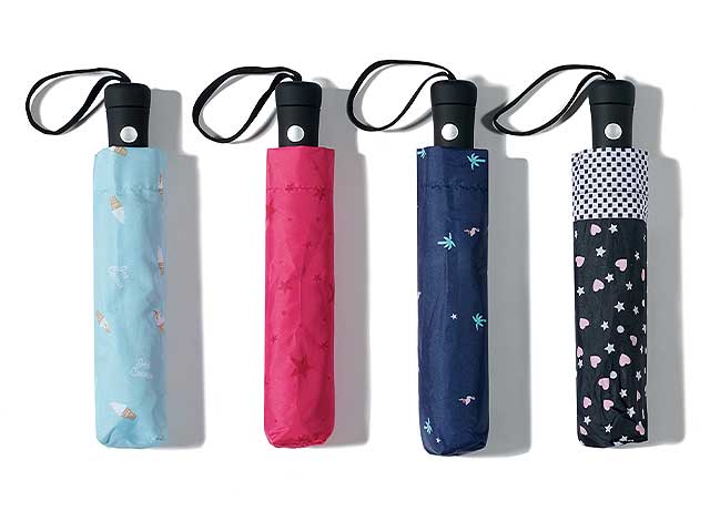 Ombrello pieghevole, apertura automatica, tessuto pongee, fantasia donna ass.