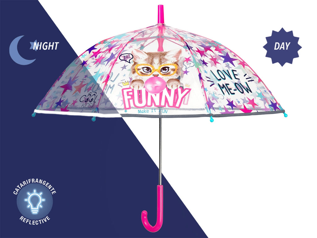 Ombrello kids manuale 45 cm cupola Funny cat kids