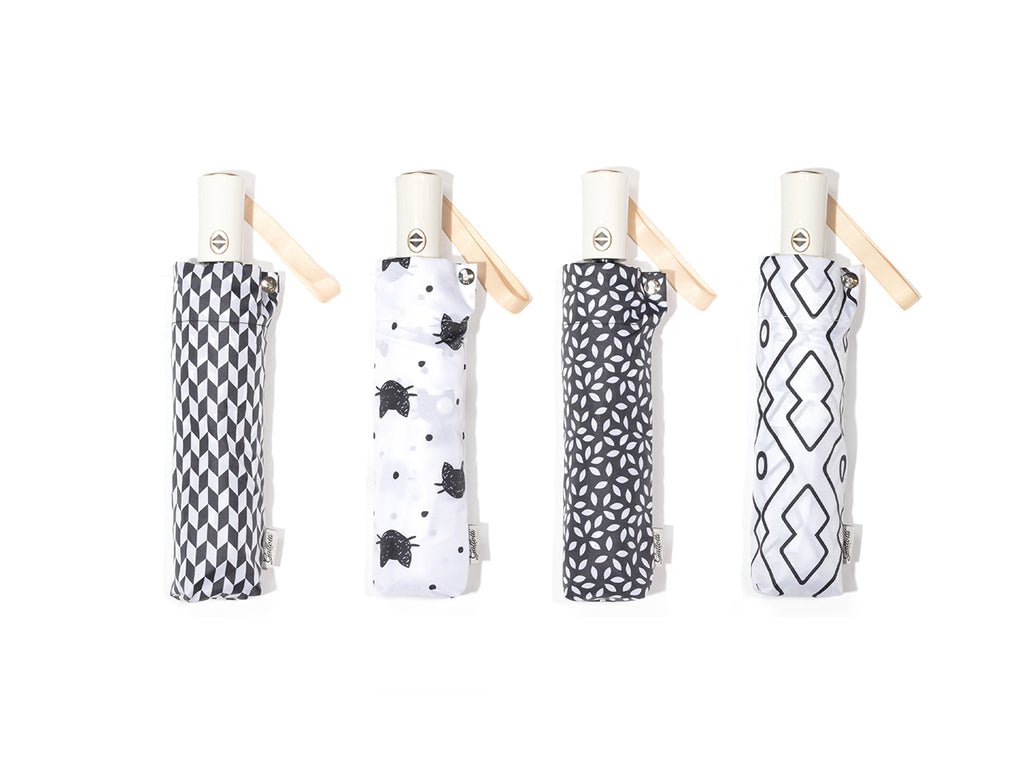 Ombrello pieghevole automatica A&C con aste e struttura in fibra di vetro, con funzione antivento realizzato in tessuto pongee black&white.