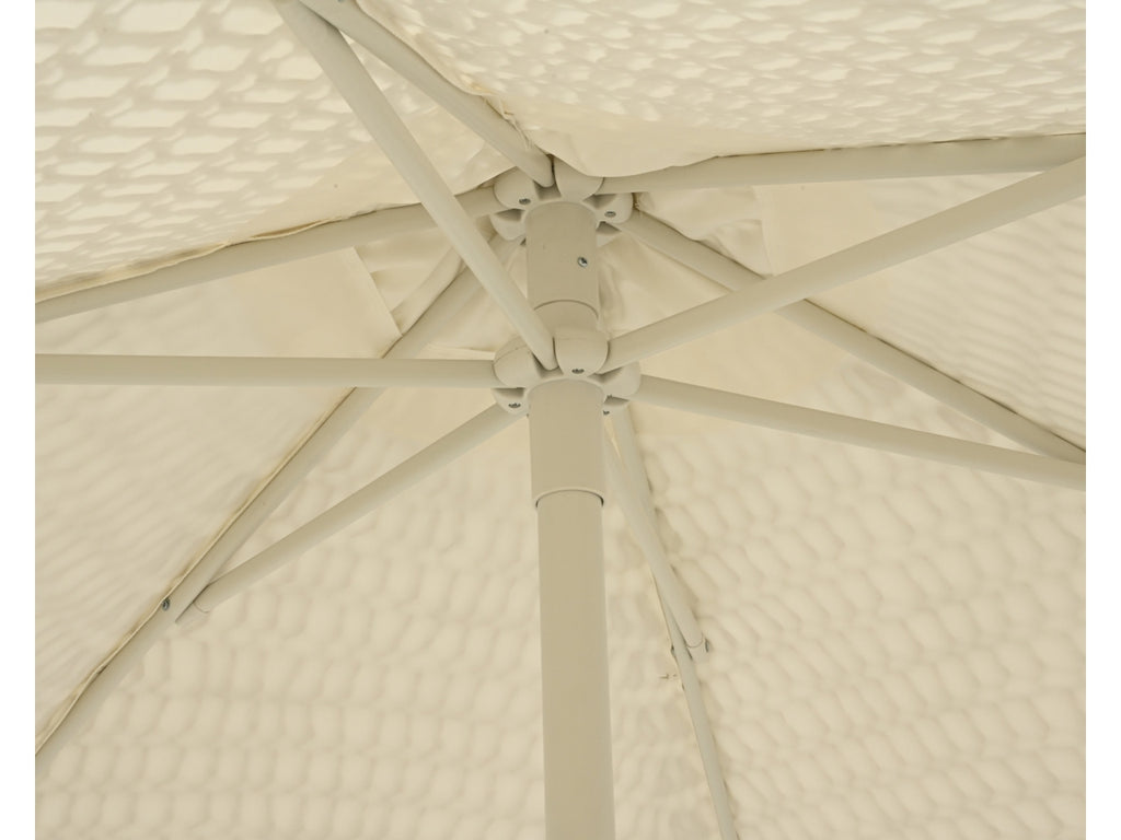 Una giornata estiva diventa ancora più piacevole con questo elegante ombrellone che offre riparo dal sole. Questo modello di Outdoor Living ha un generoso diametro di 209 cm e un'altezza di 220 cm, perfetto per creare un angolo d'ombra sul balcone, sulla terrazza o in giardino. La robusta struttura in acciaio con diametro di 38 mm garantisce una base resistente e stabile, rifinita con un'elegante verniciatura a polvere bianca. La particolarità è lo strato superiore in maglia, che conferisce all'insieme un tocco affascinante e unico.