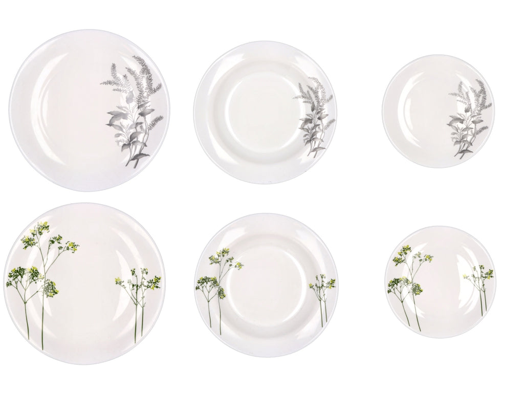 Opale servizio di piatti da 18 pezzi bianco con foglie in 2 assortimenti