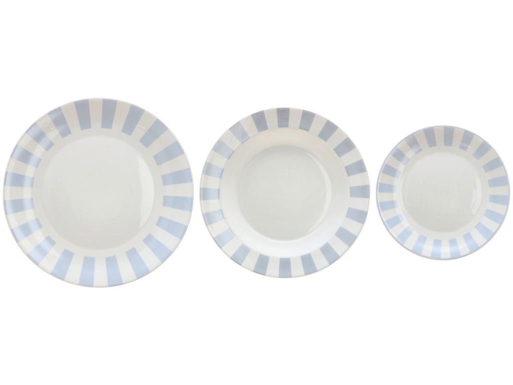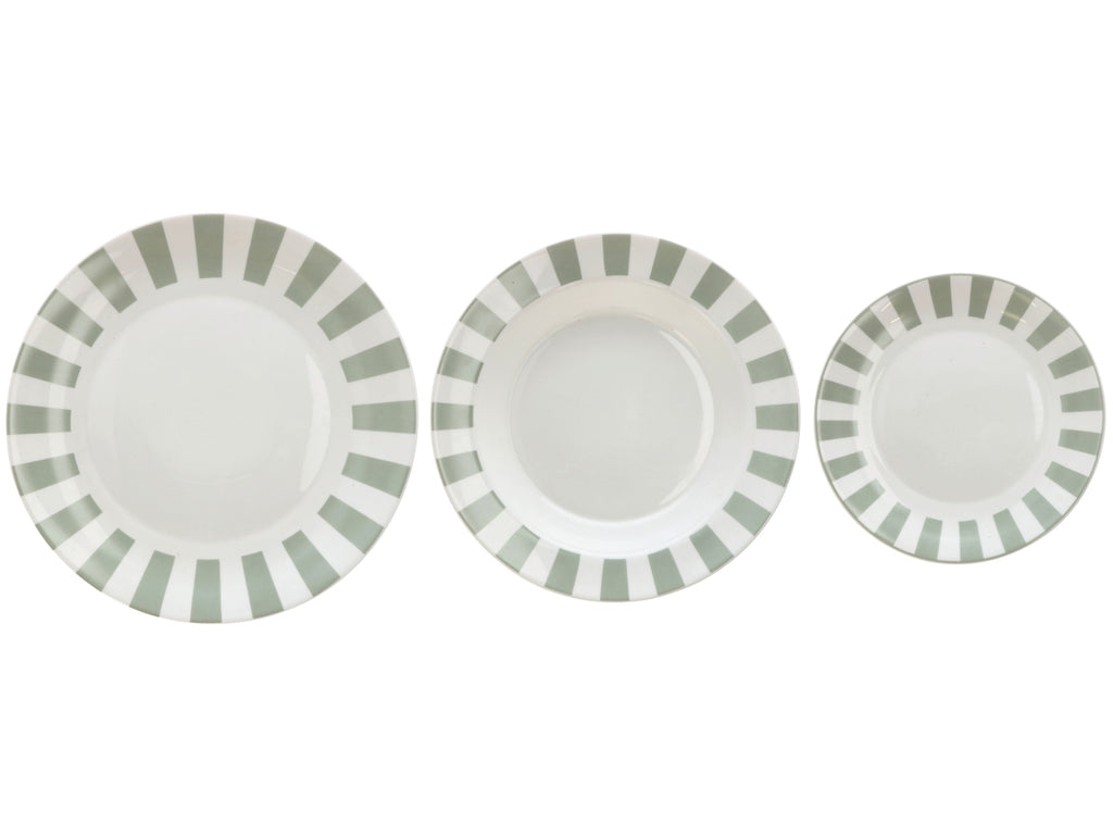Opale servizio piatti da 18 pezzi bianco con bordo rigato, 2 assortimenti