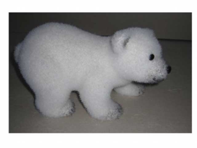ORSETTO A 4ZAMPE BIANCO FLOCCATO H.13X23X11CM.