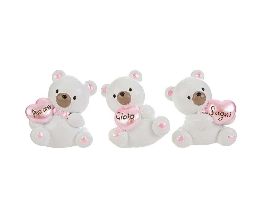 Orsetto in resina 4x3xh.5cm rosa, in 3 modelli assortiti