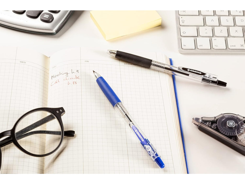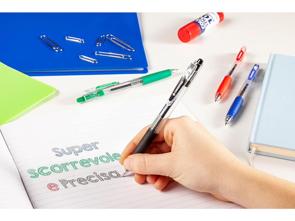 OBG è il connubio ottimale tra la scorrevolezza del gel e la viscosità della penna a sfera e si adatta a tutte le tue esigenze di scrittura. Confezione da 10 Penne a sfera nere a scattoPUNTA E INCHIOSTRO: punta da 1mm con inchiostro dalla composizione innovativa Oil Based GelPRECISA: Scrittura fluida e precisa, si asciuga rapidamente e non sbavaPRATICA: dotata di clip per il taschino, con fusto trasparente per vedere il livello di inchiostro e con pratica Impugnatura in gomma, perfetta per chi scrive a lungoNon solo nero. Scopri anche il rosso, il blu e colori intensi e vividi come il rosa, il viola, l'azzurro e l'arancione