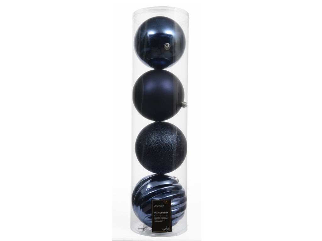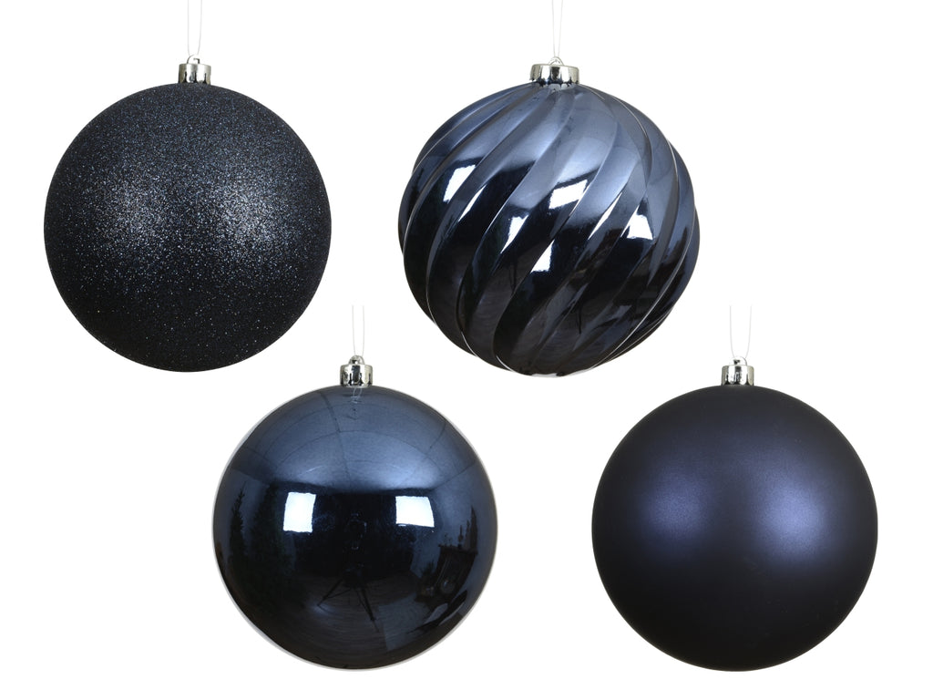 Palla 14cm in confezione da 4 pezzi blu notte lucido, opaca e glitter