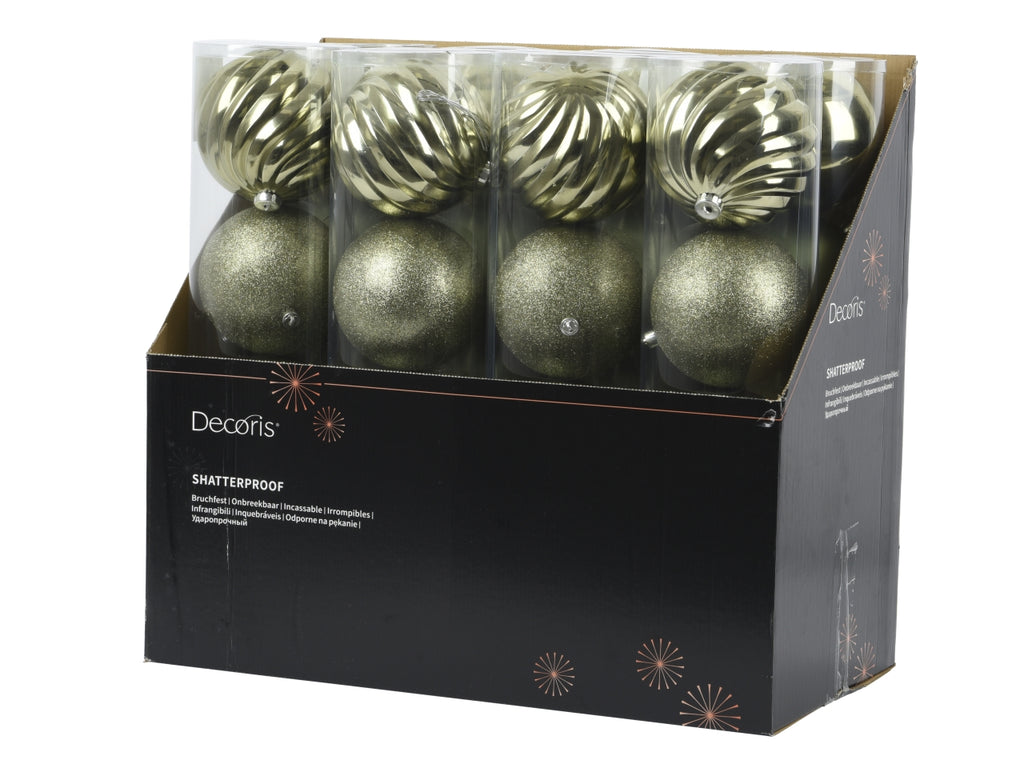 Palla 14cm in confezione da 4 pezzi verde rosmarino lucido, opaco e glitter