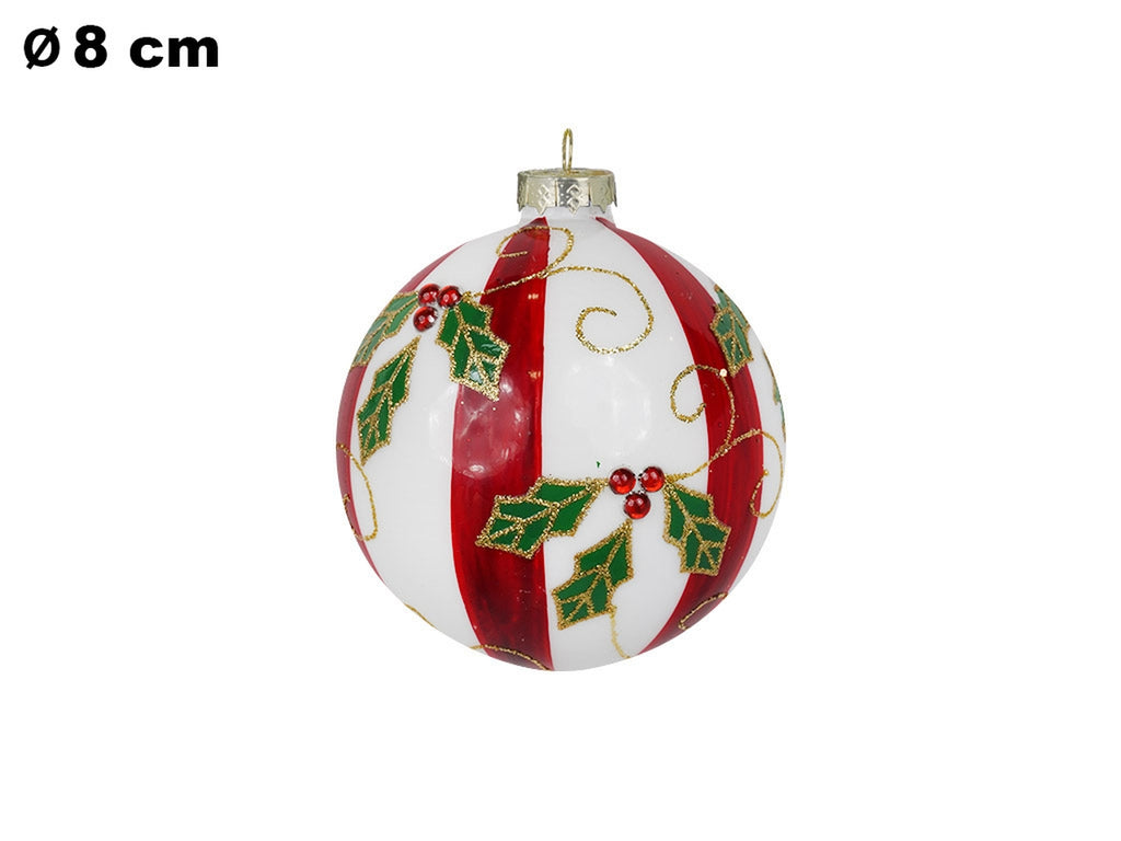 Pallina Natalizia 8 cm a sfera in vetro con decorazioni per albero di natale