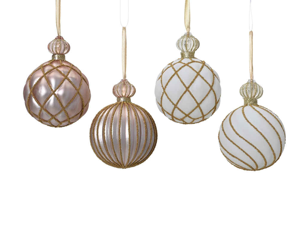Palla di vetro 8x10,5cm dipinta a mano con glitter e linee in 4 assortimenti