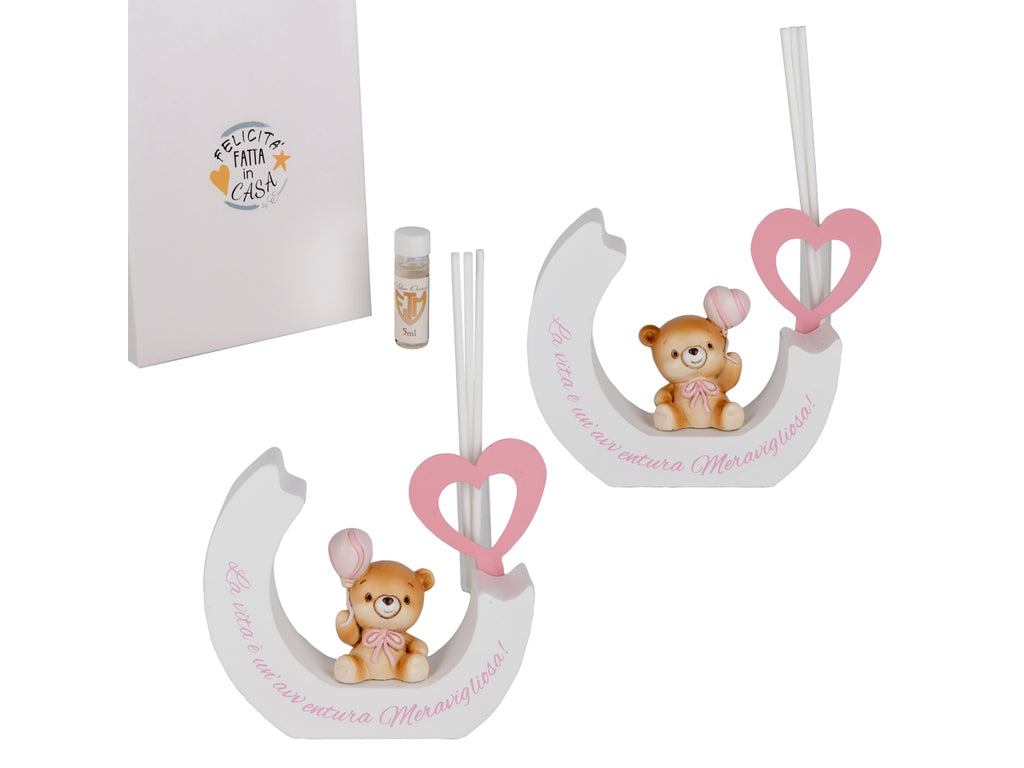 Palla diffusore orsetto con bacchette e profumo 12xh.10cm rosa